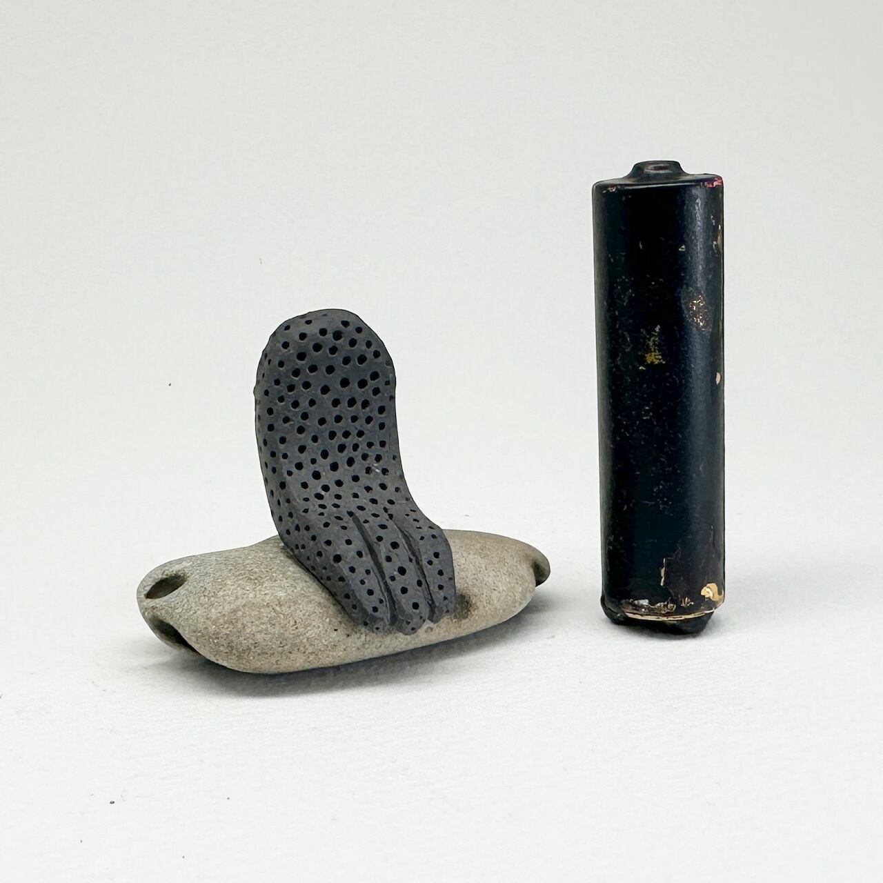 素 材:陶(黒泥土/1250度焼成)、石